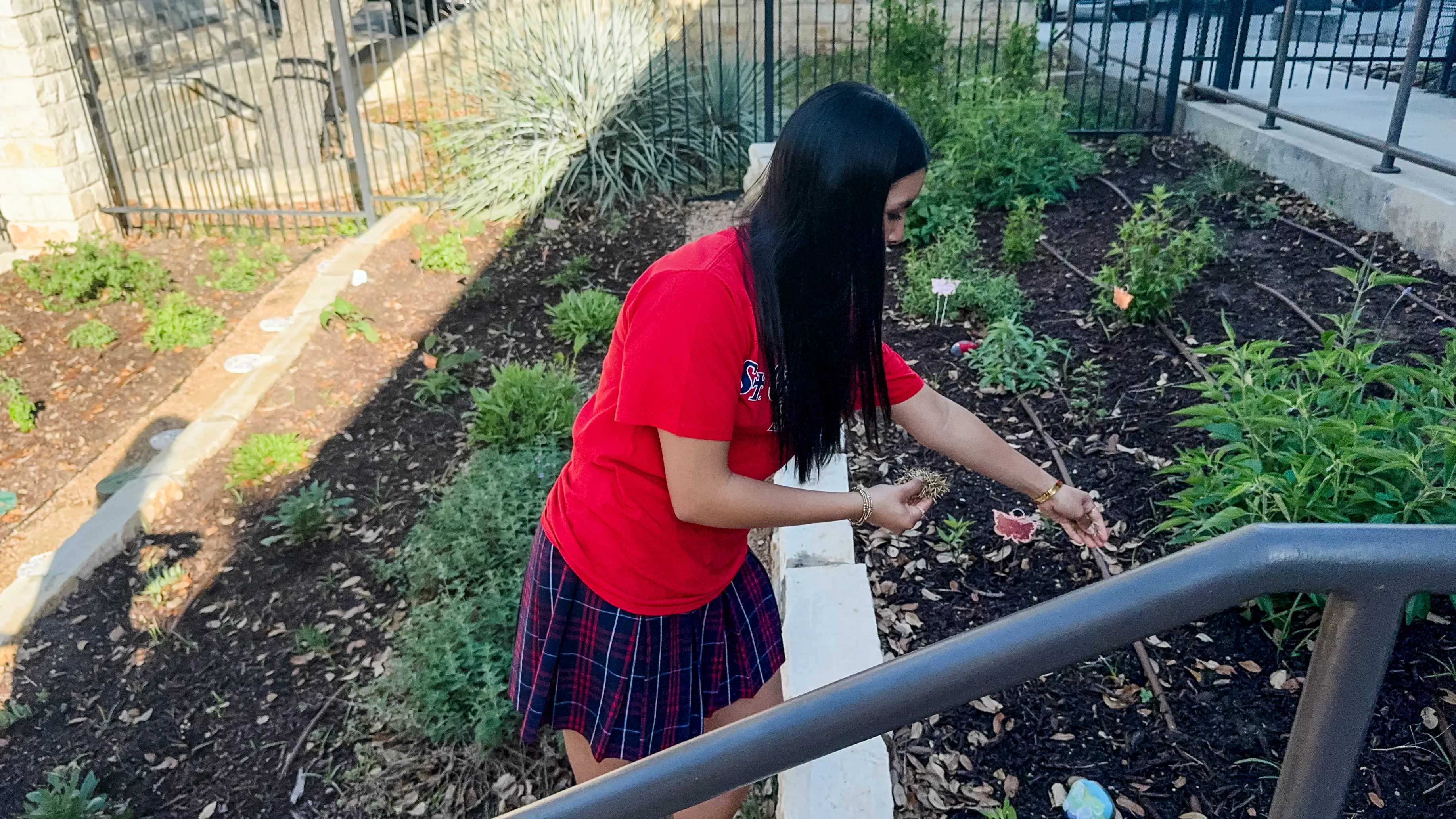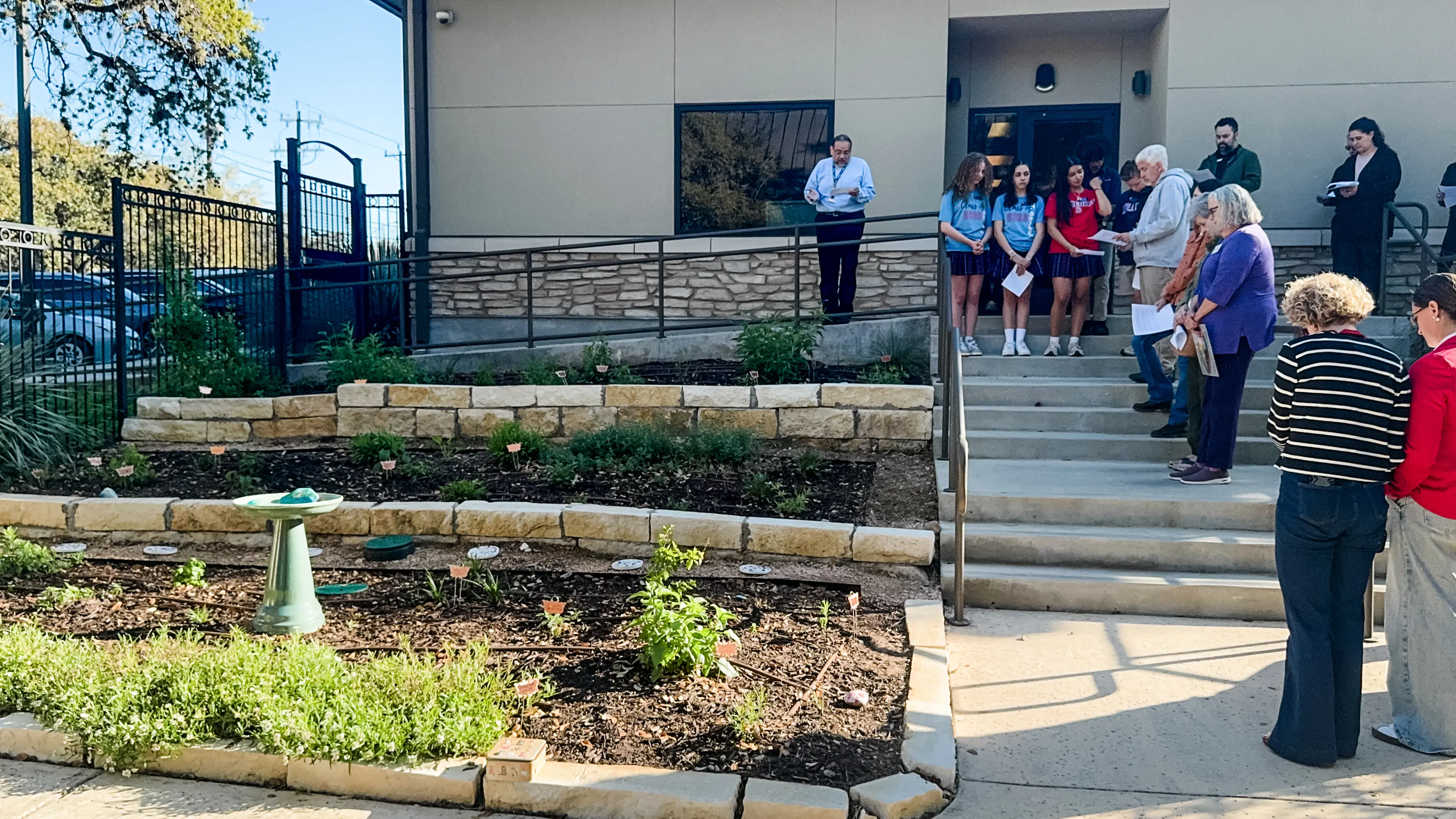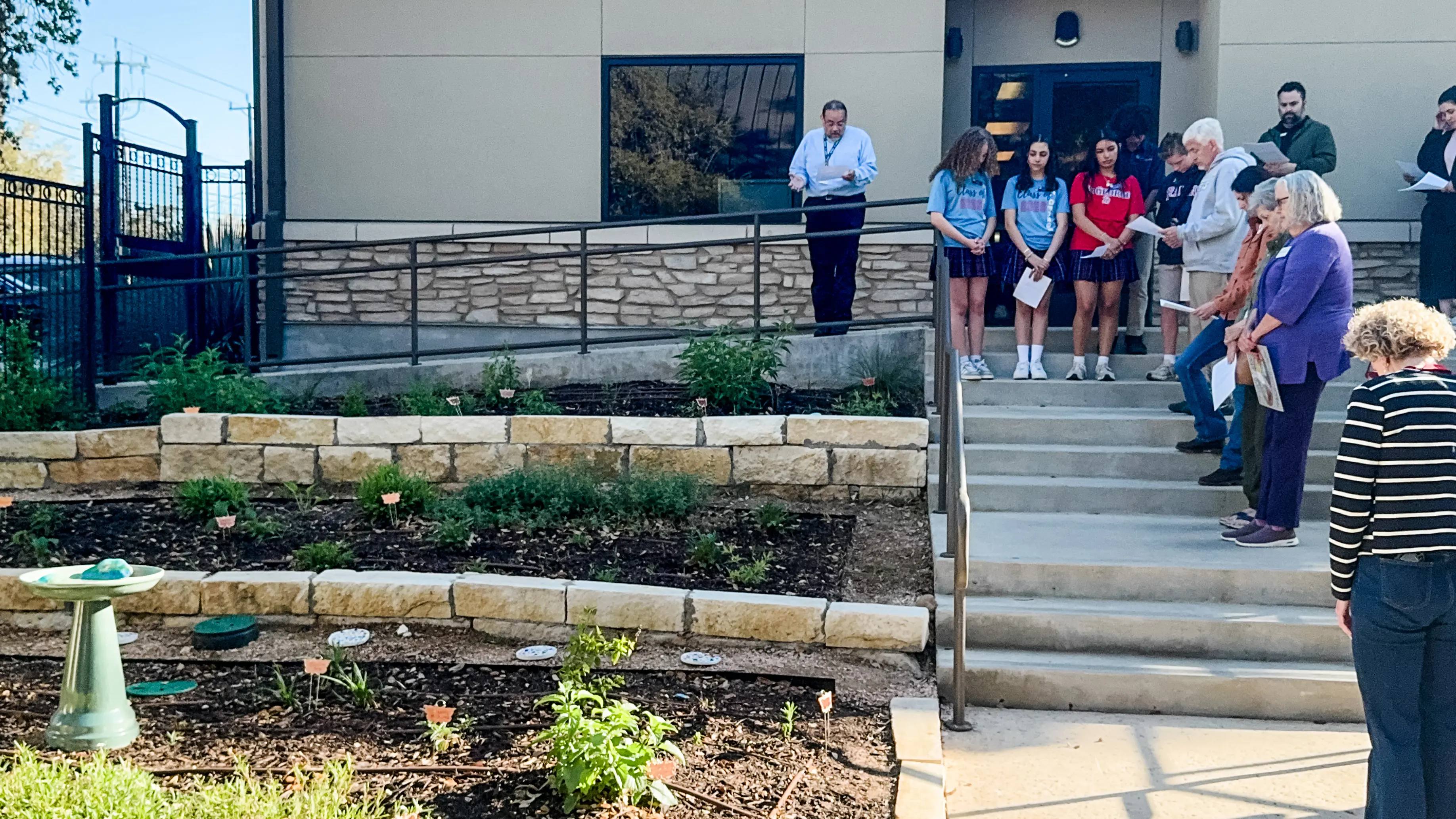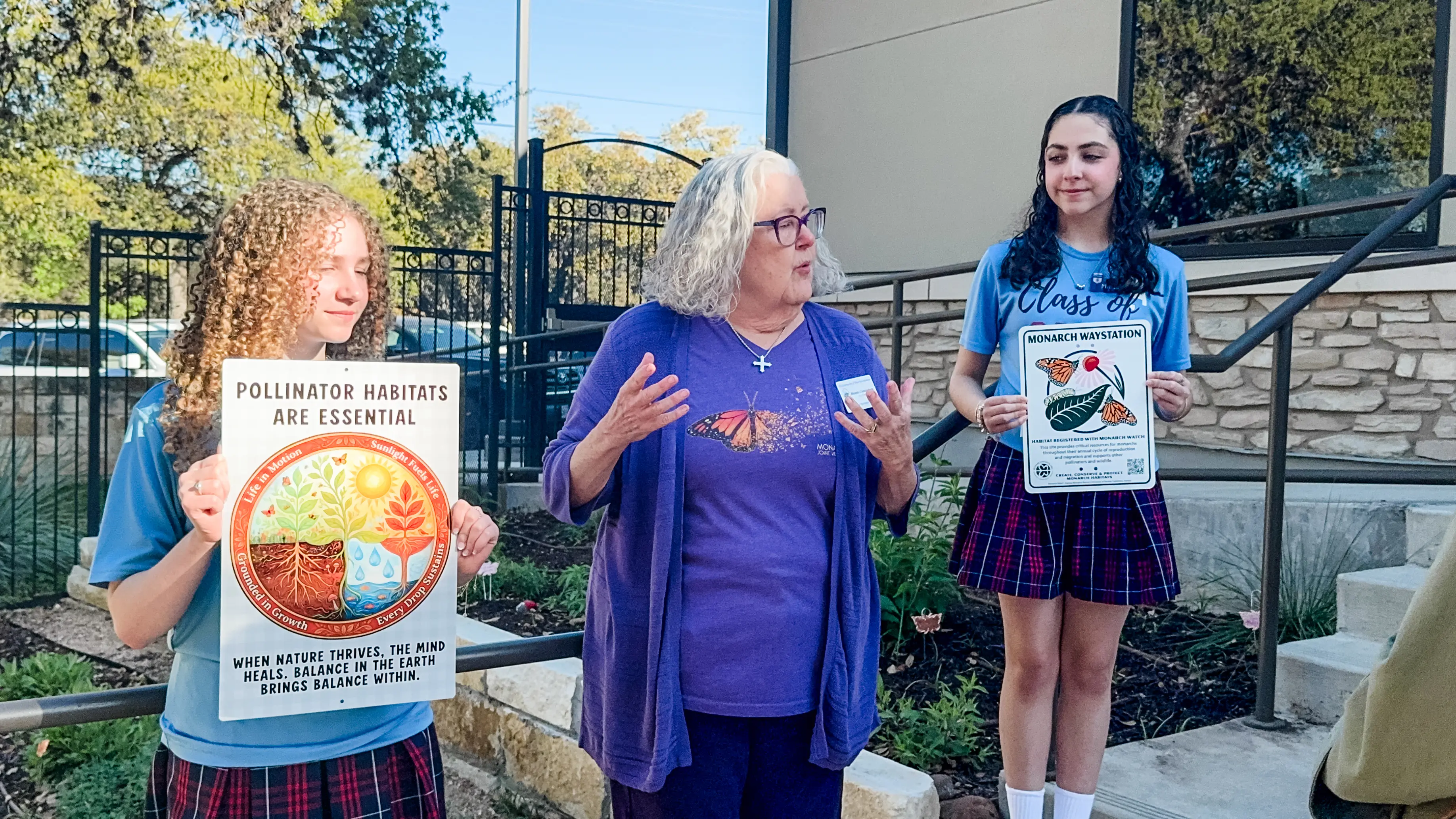 On Friday morning, March 20, the St. George Church and School dedicated its Seeds of Hope Pollinator Garden with the help of St. George Church Rector Ram Lopez, St. George School administrators, St. George School Ambassadors, Creation Care ministry members, and parents. At that event, the Creation Care ministry presented a Certificate of Recognition as Monarch Waystation #55002. The certificate says in part “Monarch Waystations provide critical resources for monarchs throughout their annual cycle of reproduction and migration.” Those of us who worked in the garden last spring had actually watched as three monarch butterflies emerged from chrysalises on the same workday! How did the garden come about?