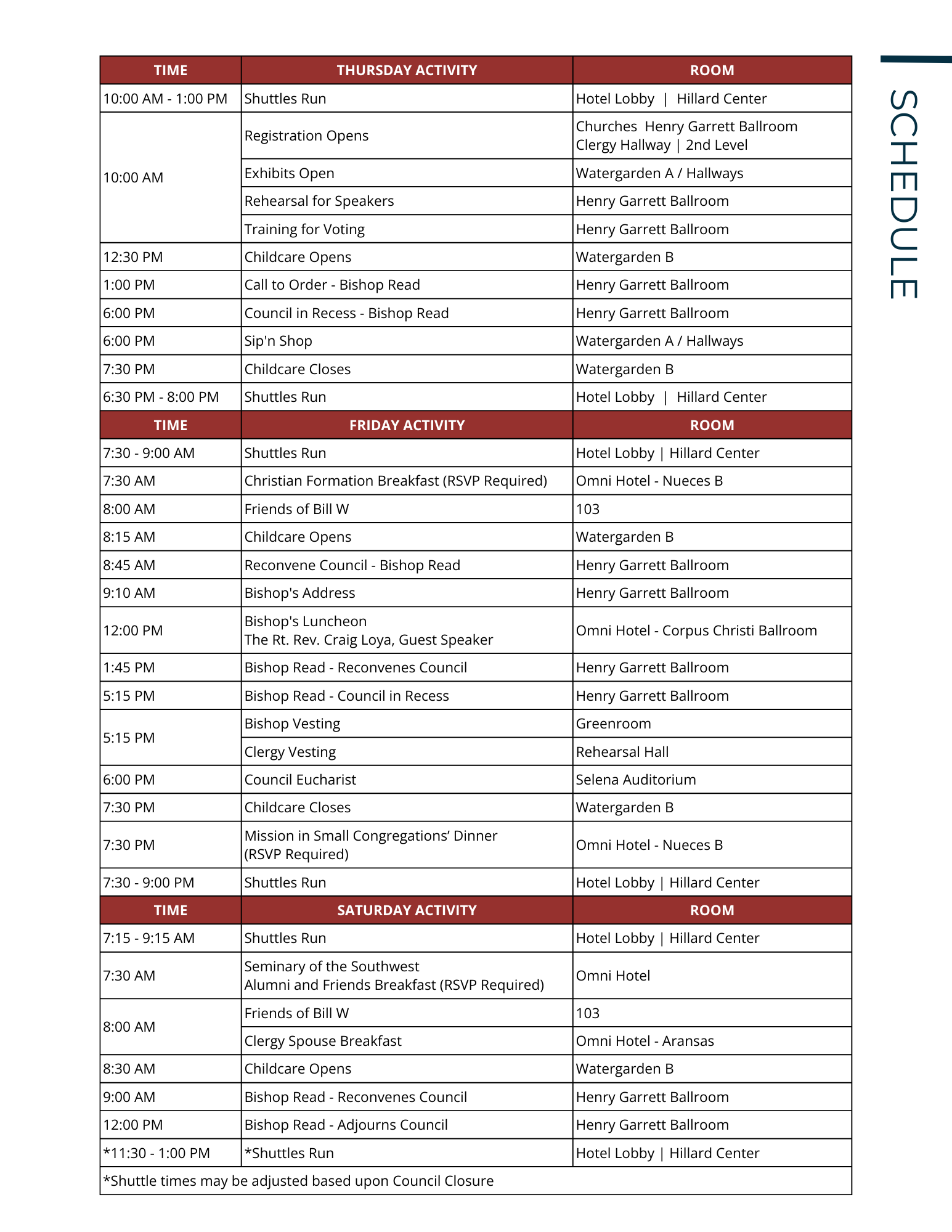 La Diócesis del Oeste de Texas celebrará sus 122y Reunión anual del Consejo en el Hilliard Center, Corpus Christi, Texas Del jueves 26 de febrero al sábado 28 de febrero.